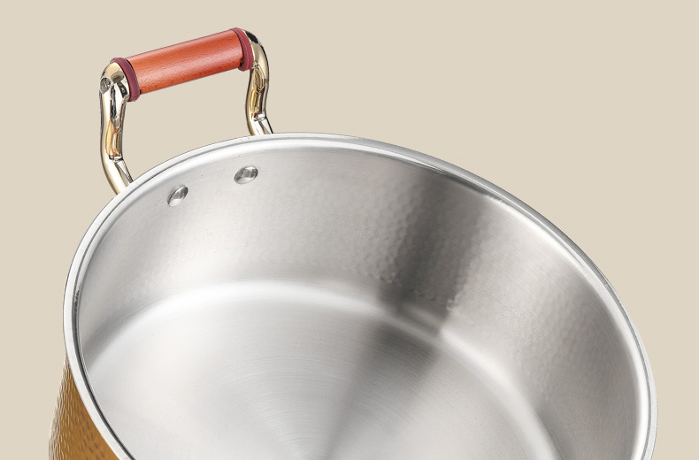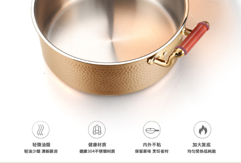 2.鍋身采用渡鈦工藝,精致奢華,長時(shí)間使用不變色,30尺寸大容易,滿足您煲湯、燉煮、煎炒等需求。