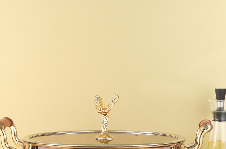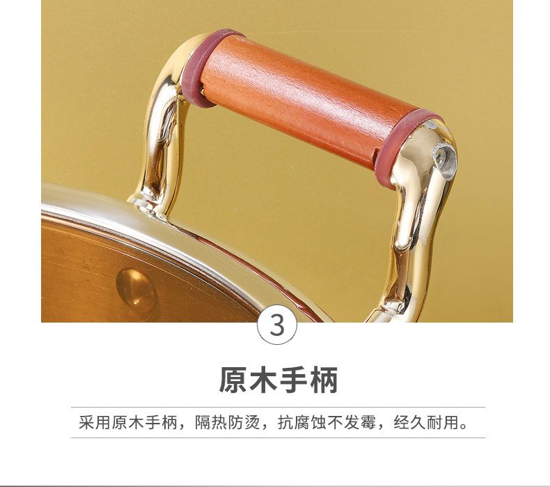 3.獨(dú)家開模蓋提采用純鑄鋁件精致獨(dú)特,高貴奢華。搭配純紅木湯耳,隔熱防燙,握感舒適。