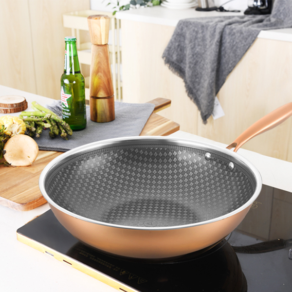 黃金鍋廠家告訴大家察看有無疵點(diǎn)。疵點(diǎn)主要有小凸起和小凹坑兩類,小凸起的凸起部分一般是鐵,對鍋的質(zhì)量影響不大。如果凸起在鍋的凹面時,可用砂輪磨去,以免擋住鍋鏟。