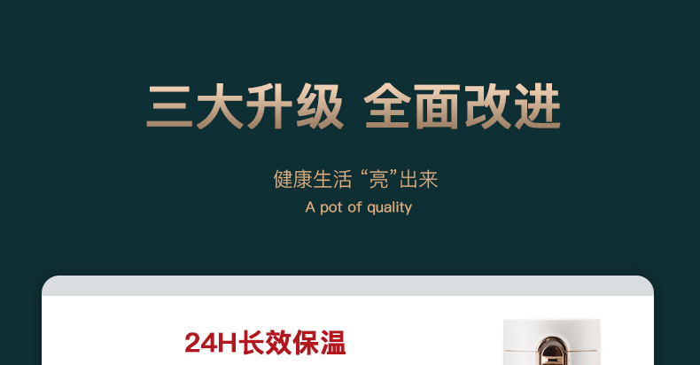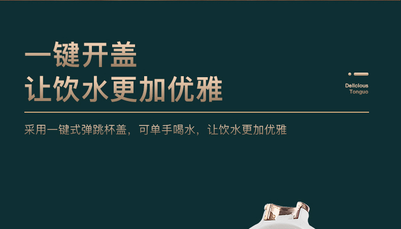 女神彈跳杯保溫杯24小時長效保溫,雙層抽真設計,保溫效果更佳。采用食品級304抑菌內膽,關愛飲水健康。一鍵開蓋,便攜飲水,不擔心誤碰漏水。女神彈跳杯舒適手感杯身,采用人體工學舒適手感杯身,由內而外的舒適。女神保溫杯杯子內置密封圈,層層密封,搖晃不撒漏,出門攜帶更安心。女神保溫杯食品級PP內蓋,嬰兒奶嘴材質,保障飲水健康。硅膠防滑杯墊,耐用更安心。圓潤杯口出水流暢方便,清潔簡單便捷。